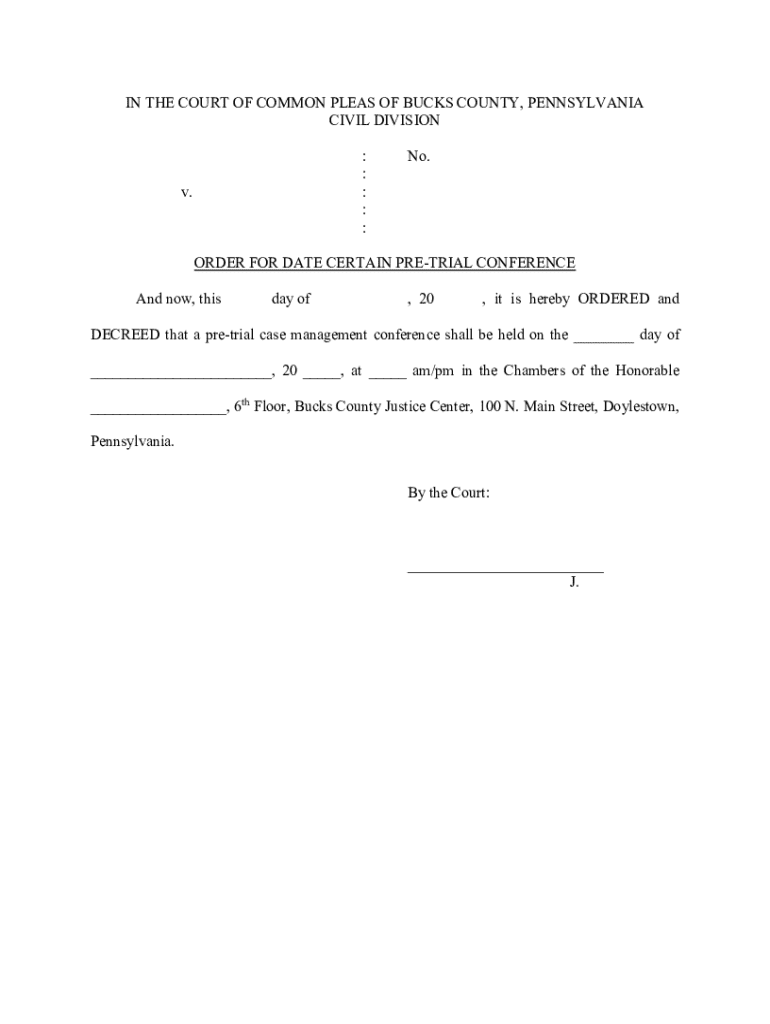 Get the free NO.: v. : : PRELIMINARY DATE CERTAIN CASE MANAGEME