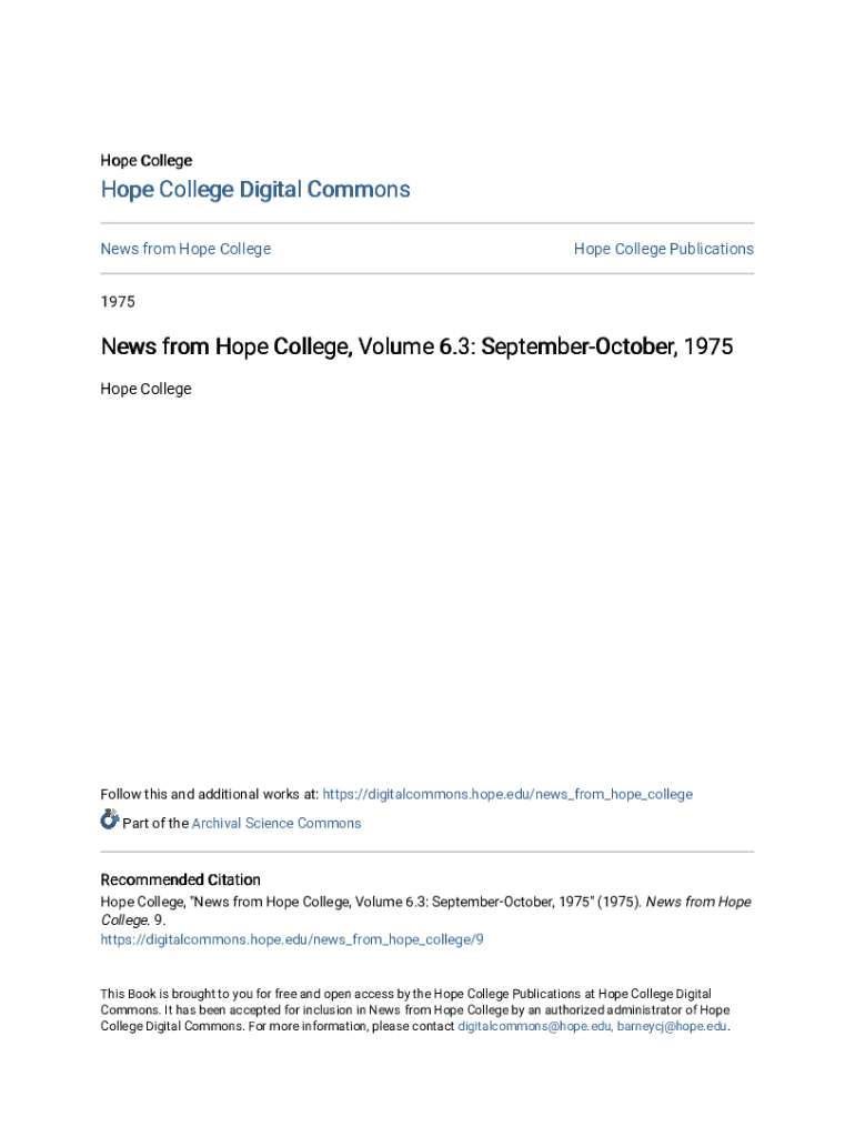 Get the free News From Hope College, Volume 6.3: September-october, 1975