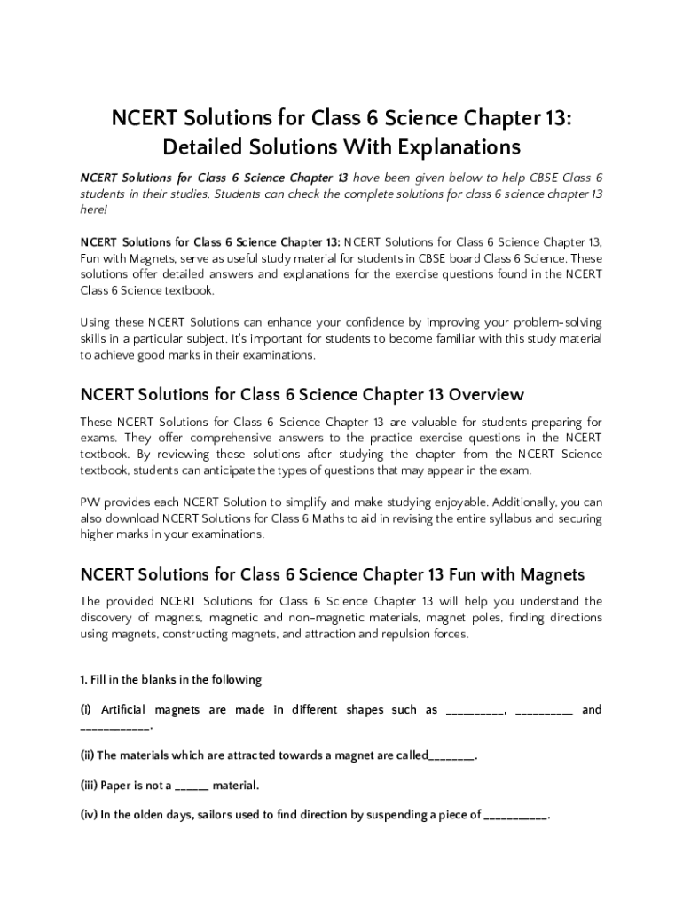 Get the free Ncert Solutions for Class 6 Science Chapter 13