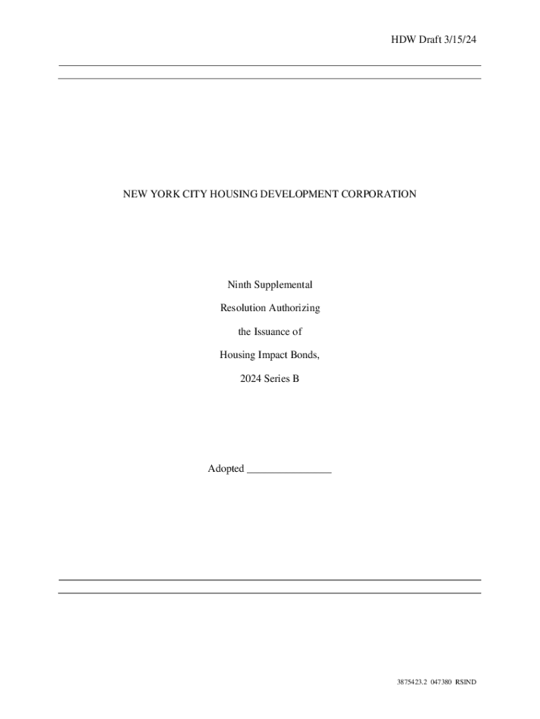 Get the free Ninth Supplemental Resolution Authorizing the Issuance of Housing Impact Bonds, 2024...