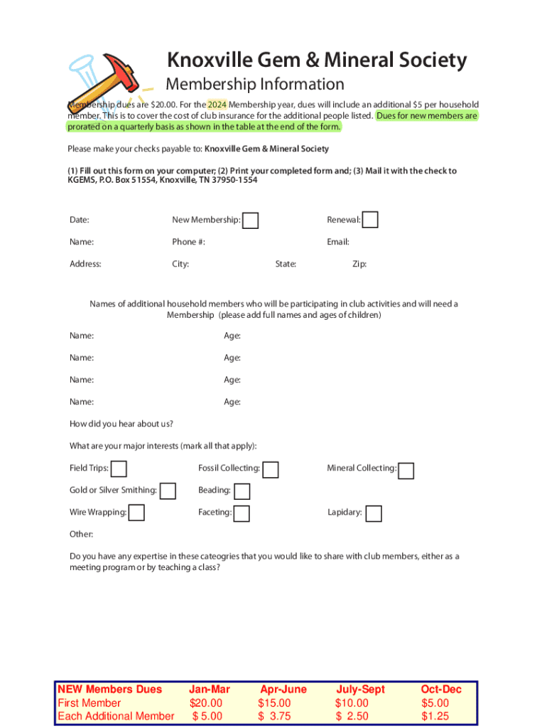 Step-by-step guide to completing the Knoxville Gem Mineral Society Form