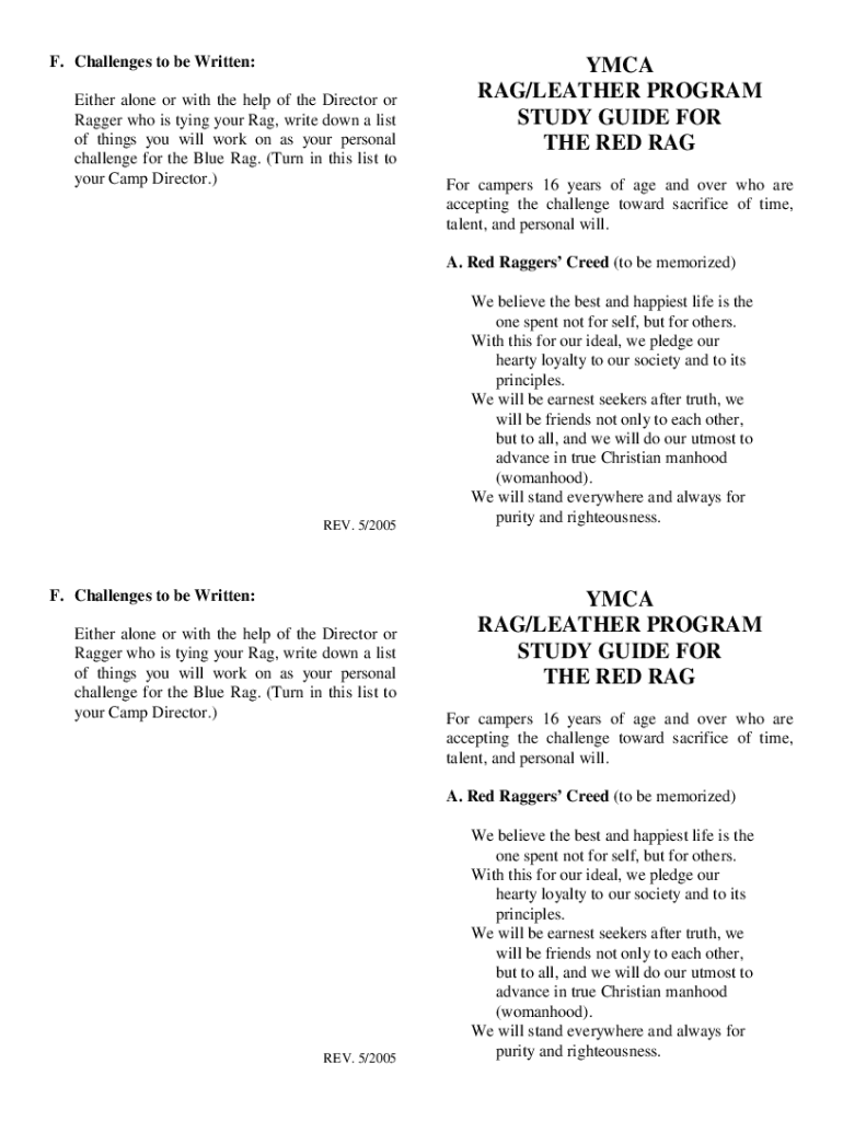 Get the free Ymca Rag/leather Program Study Guide for the Red Rag