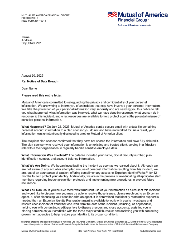Get the free Notice of Data Breach Please read this entire letter. Mutual ... - oag ca