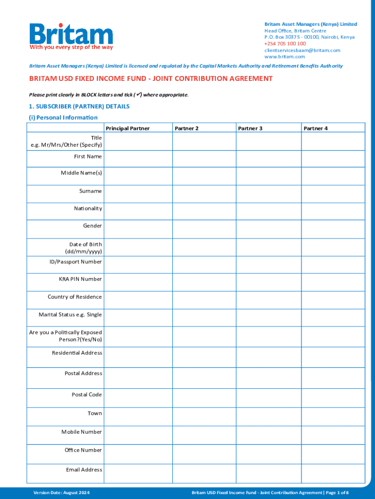 Get the free Britam Usd Fixed Income Fund - Joint Contribution Agreement