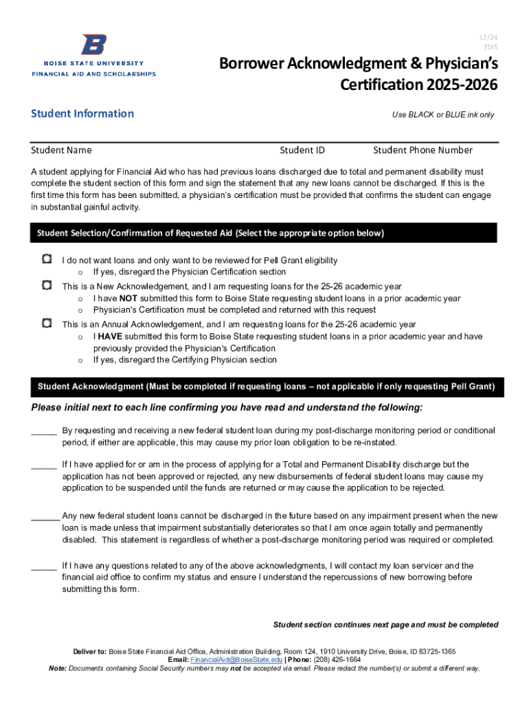 Get the free Borrower Acknowledgment & Physician’s Certification 2025-2026