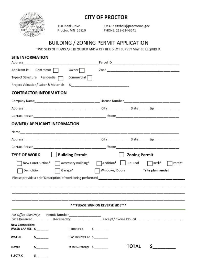 When preparing a building zoning permit application form, certain key pieces of information must be included. Firstly, the applicant’s contact information should be clear and full, providing a direct channel for communication with local officials. Next, detailed property descriptions and location details are necessary. This includes the physical address and any relevant zoning codes that apply to the specific parcel of land.