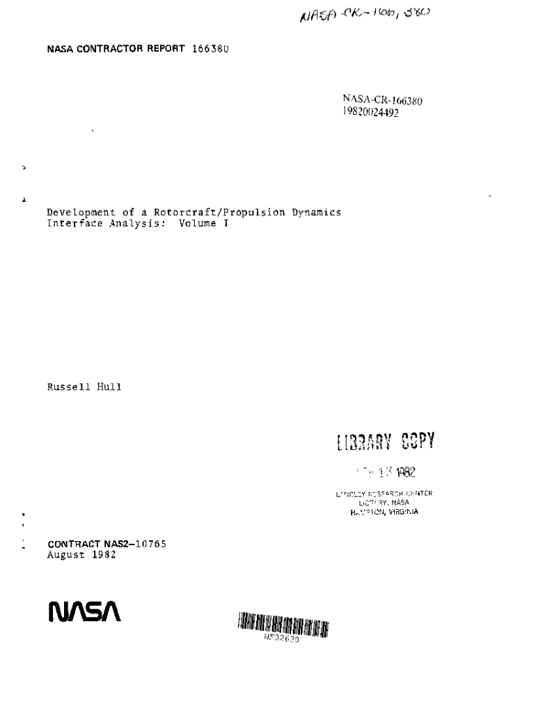 Get the free Nasa Contractor Report 166380 - ntrs nasa