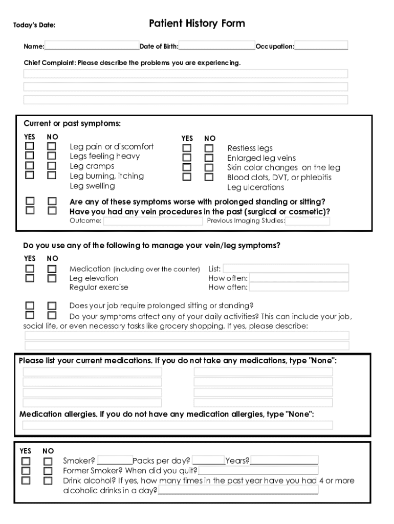 Completeness and clarity are crucial when filling out the patient history form, so take your time to consider each section carefully.