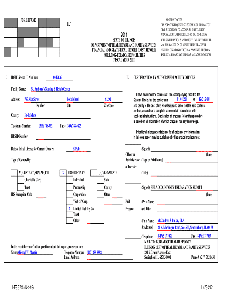 Get the free Financial and Statistical Report (cost Report) for Long-term Care Facilities - hfs i...