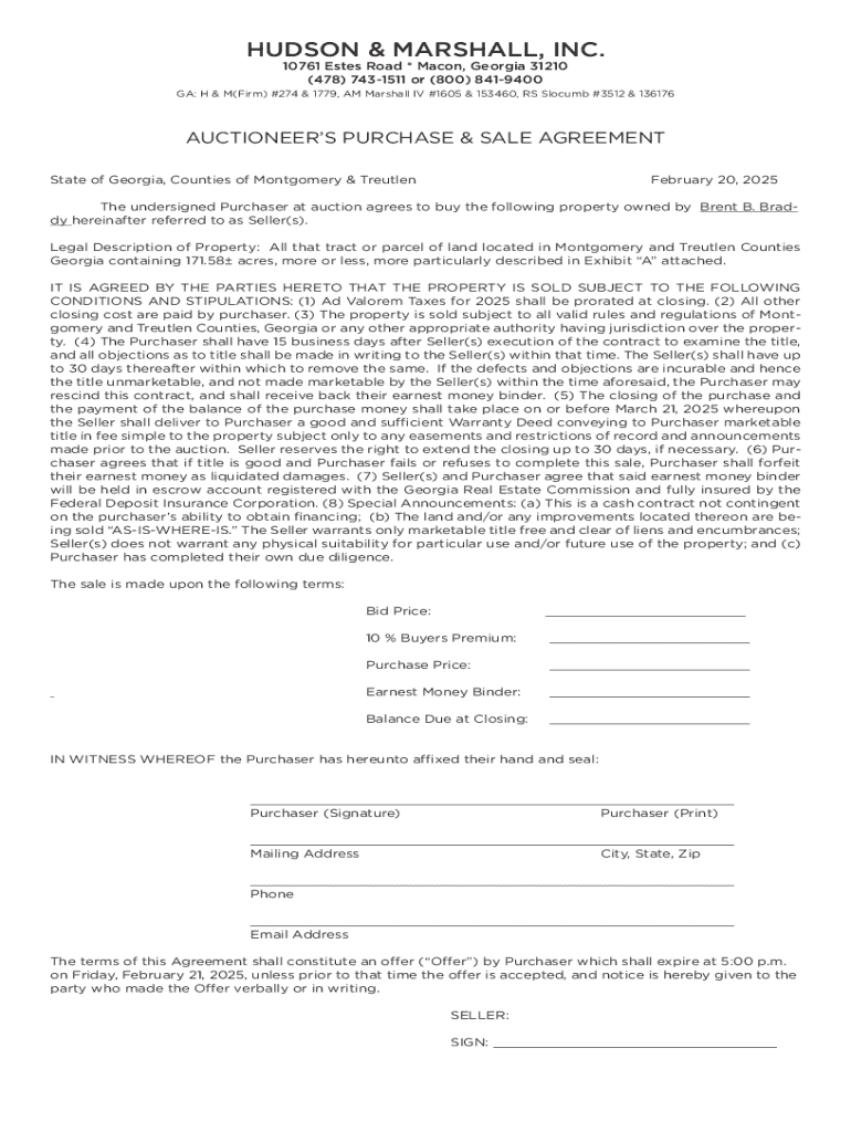 Get the free Auctioneer's Purchase & Sale Agreement