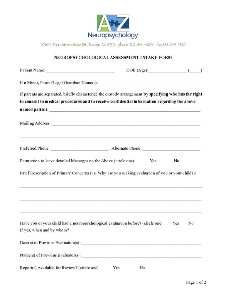 How to fill out neuropsychological assessment intake form