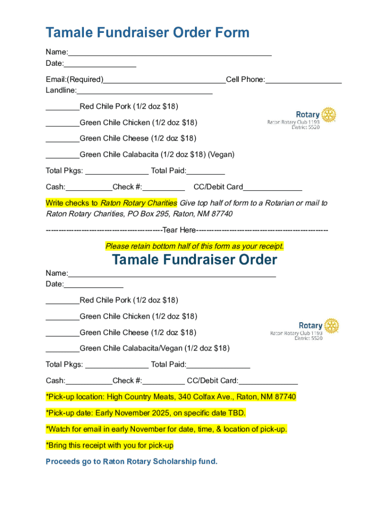 A tamale fundraiser order form is a crucial tool for organizing and managing orders during your event. This form ensures that you accurately capture all necessary information to facilitate a smooth ordering process. A well-structured order form not only helps you keep track of orders but also enhances the overall experience for your customers and supporters.