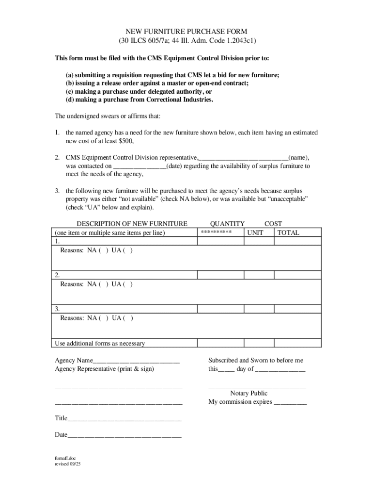 Get the free New Furniture Purchase Form - cms illinois