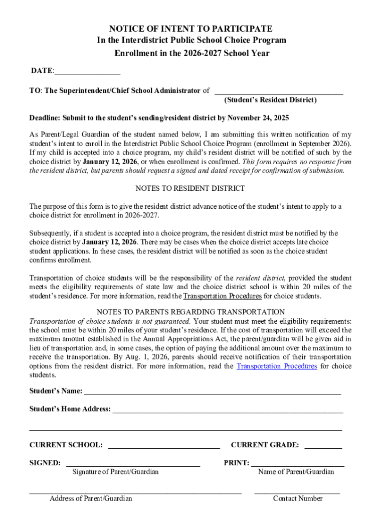 Get the free Notice of Intent to Participate