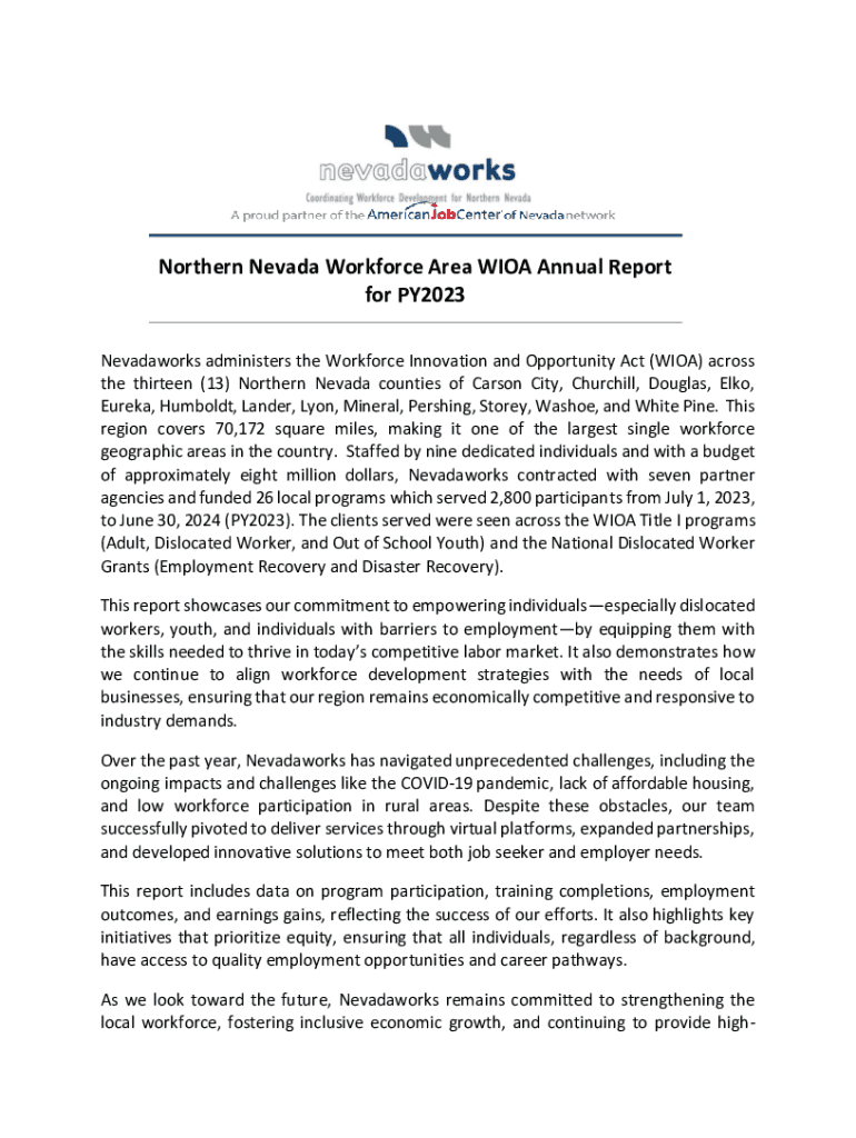 Get the free Northern Nevada Workforce Area Wioa Annual Report