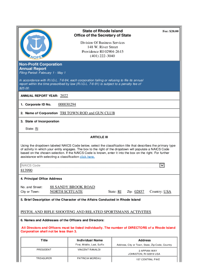Get the free Non-profit Corporation Annual Report