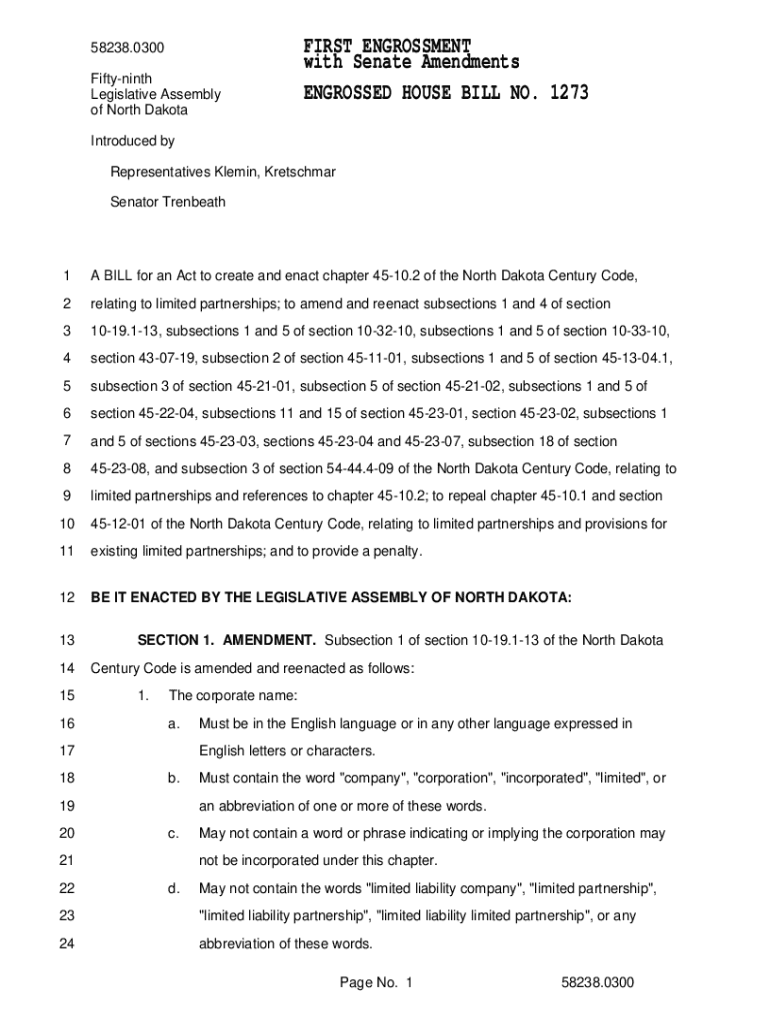 Get the free Engrossed House Bill No. 1273