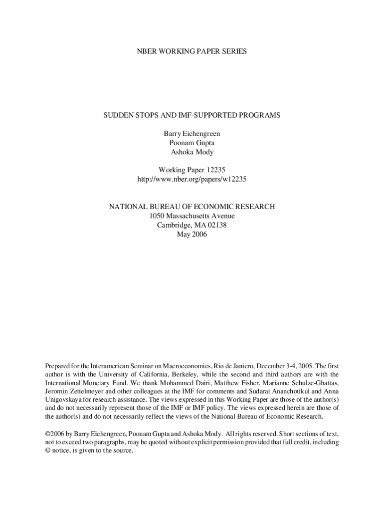 Get the free Nber Working Paper Series - Sudden Stops and Imf-supported Programs