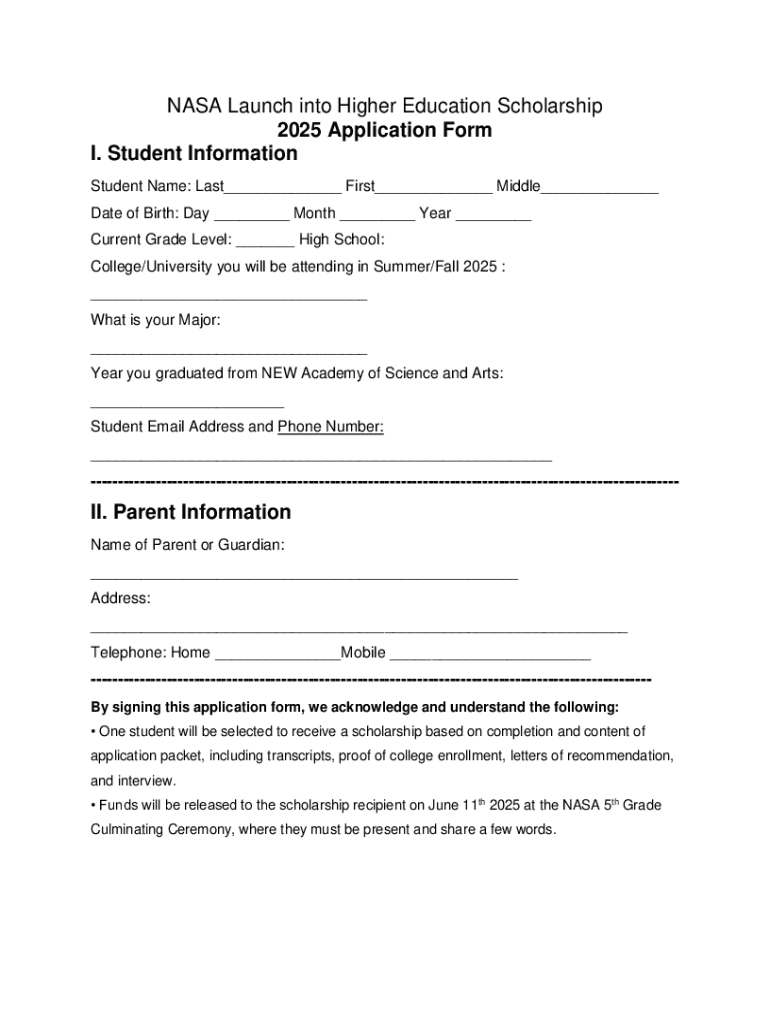 Get the free Nasa Launch Into Higher Education Scholarship 2025 Application Form