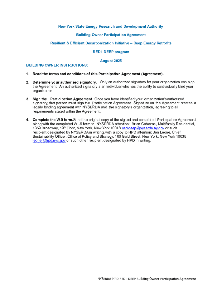 Get the free Nyserda-hpd Redi: Deep Building Owner Participation Agreement