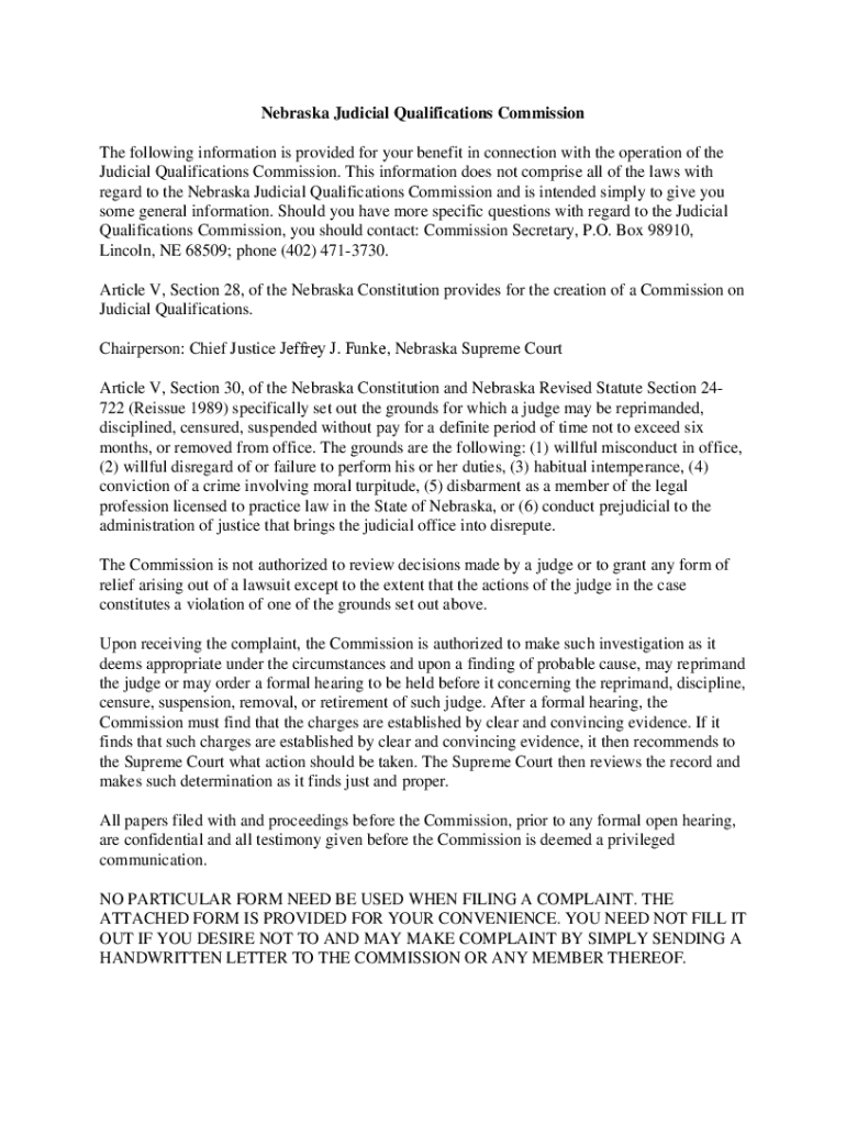 Nebraska Commission on Judicial Form: A Comprehensive Guide