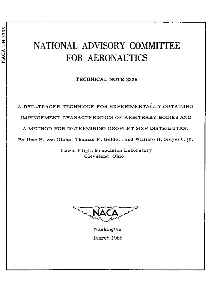 This technical note presents a dyetracer technique developed to experimentally obtain impingement characteristics of arbitrary bodies exposed to air streams with dyedwater spray. It details the experimental