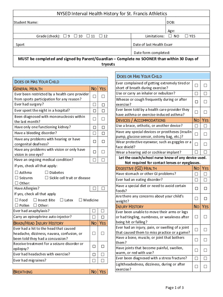 Get the free Nysed Interval Health History for St. Francis Athletics