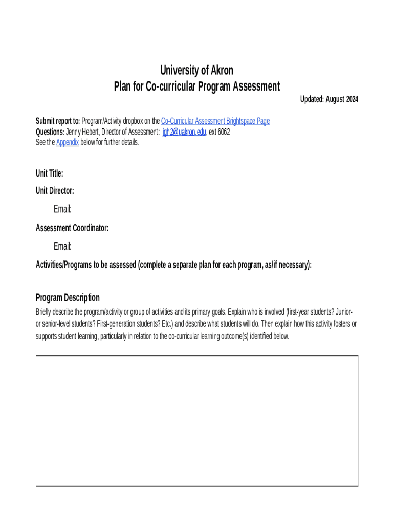University of Akron Plan for Co-curricular Program Assessment template instructions