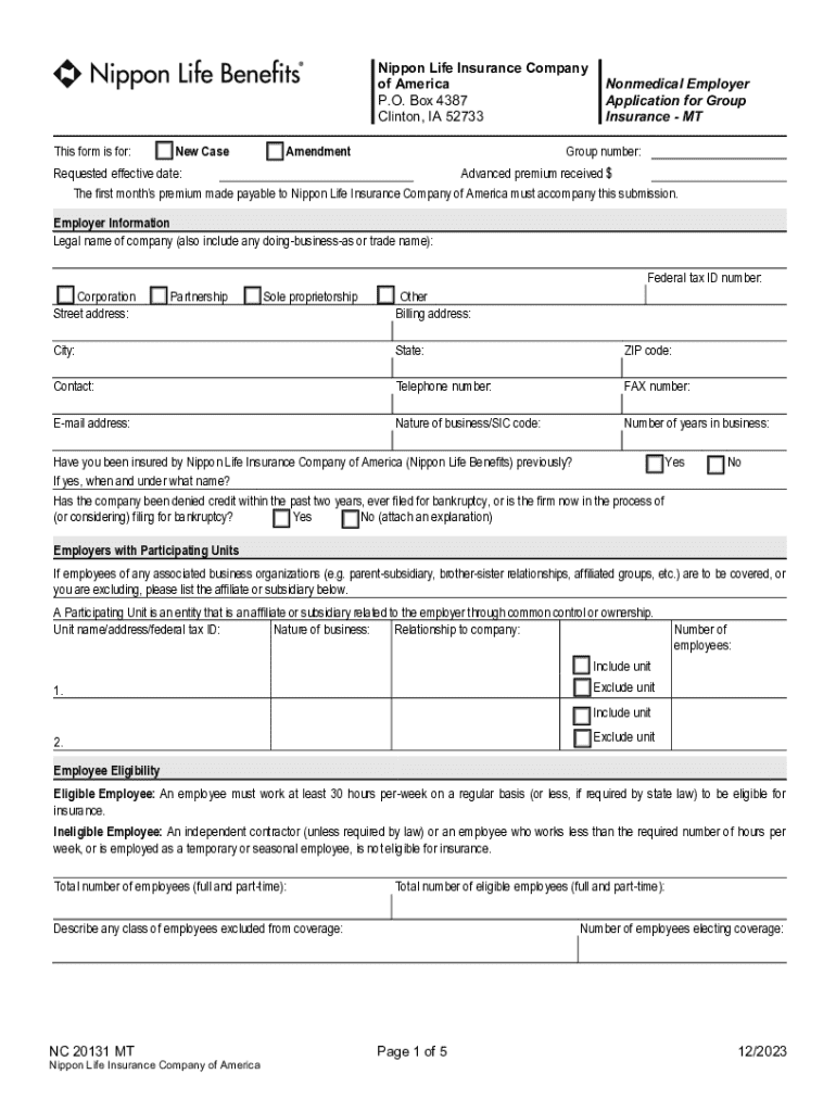 Get the free Nonmedical Employer Application for Group Insurance - Mt