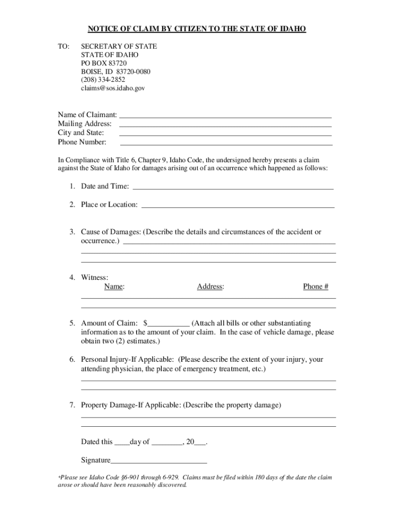 Get the free Notice of Claim by Citizen to the State of Idaho