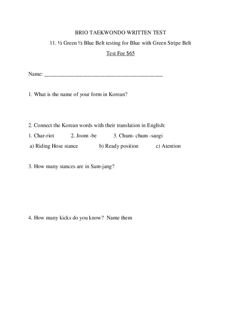 Brio Taekwondo Written Test Form: A Comprehensive Guide