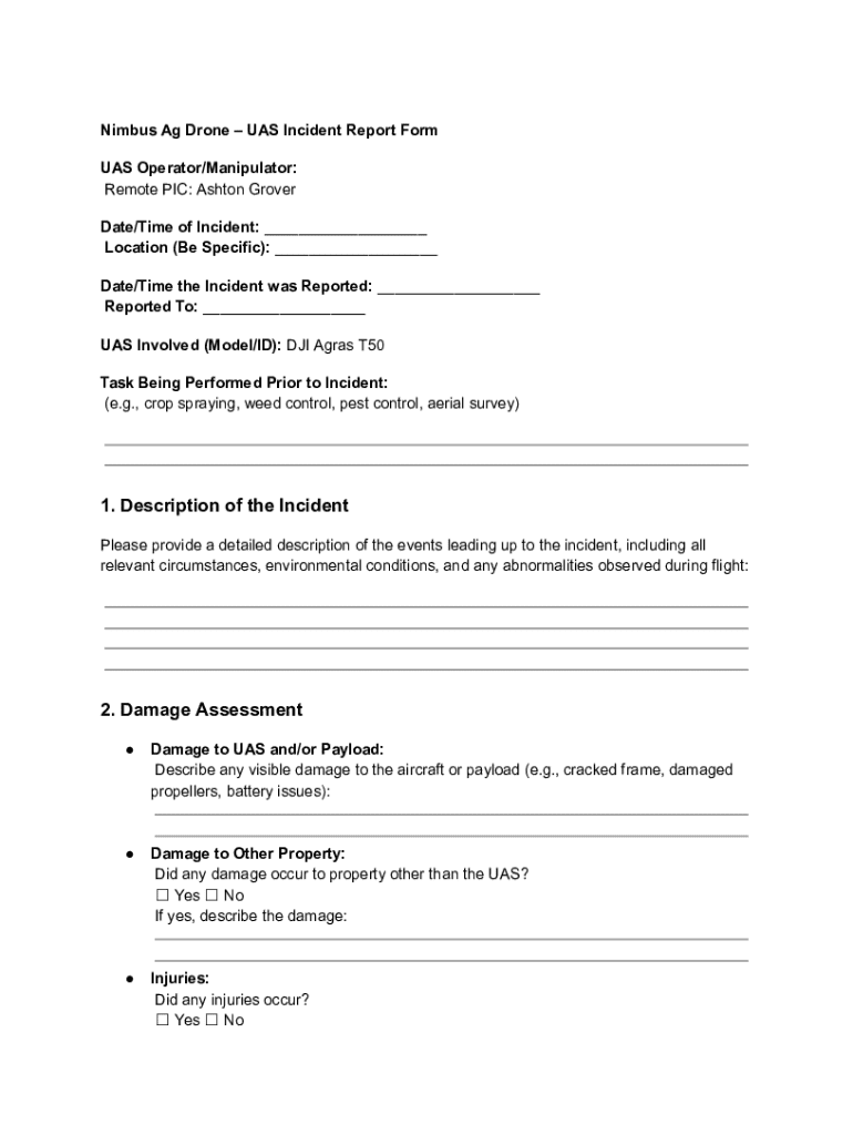 Get the free Nimbus Ag Drone – Uas Incident Report Form