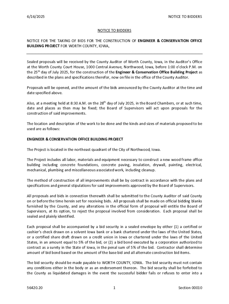 Get the free Notice to Bidders