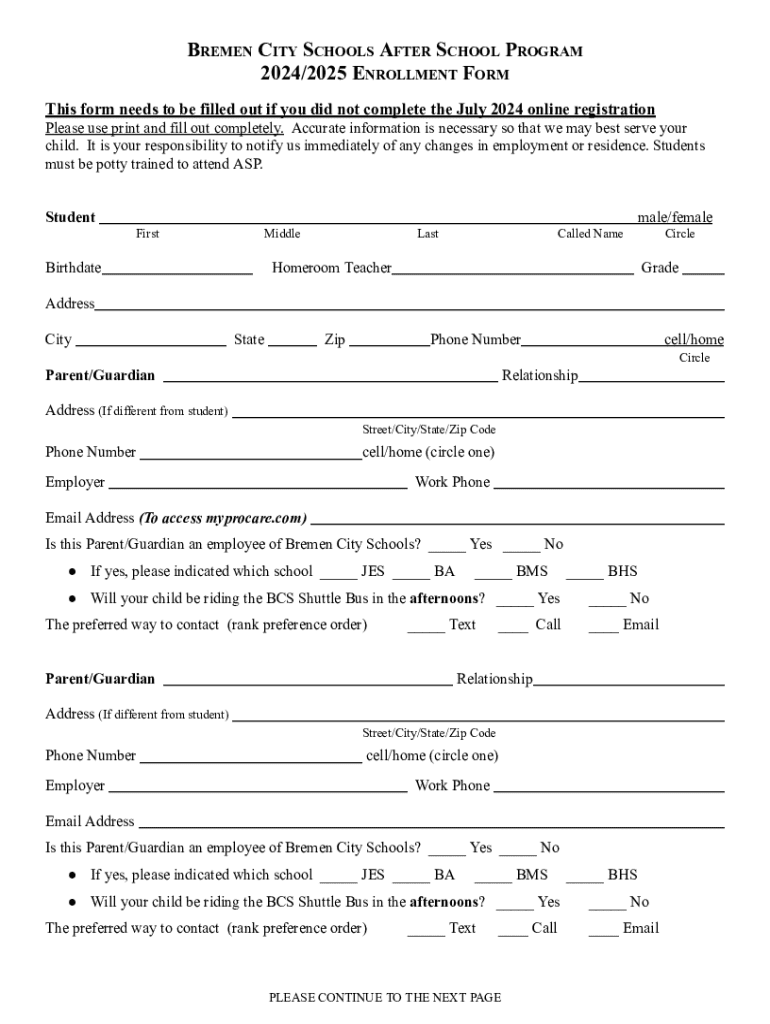 Get the free Bremen City Schools After School Program Enrollment Form