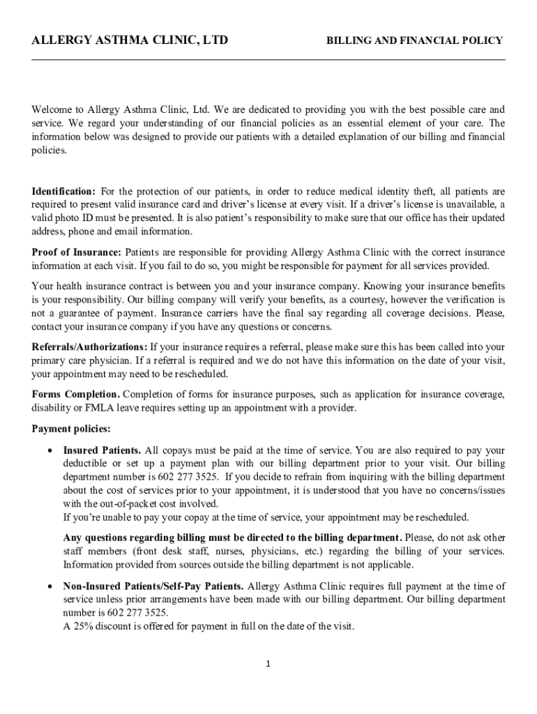 A Comprehensive Guide to the Billing and Financial Policy Form