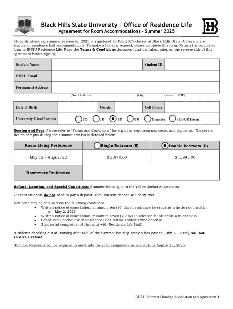 Get the free Bhsu Summer Housing Application and Agreement