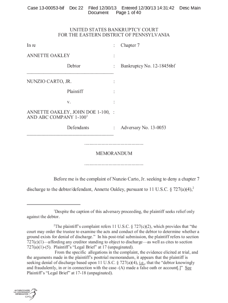 Filling out the Case 13-00053-BIF Form requires careful attention to detail. Start with the personal information fields, where you'll provide your full name, address, contact information, and any identifying numbers relevant to your case. Accurate data here ensures that the right parties receive information without delay.