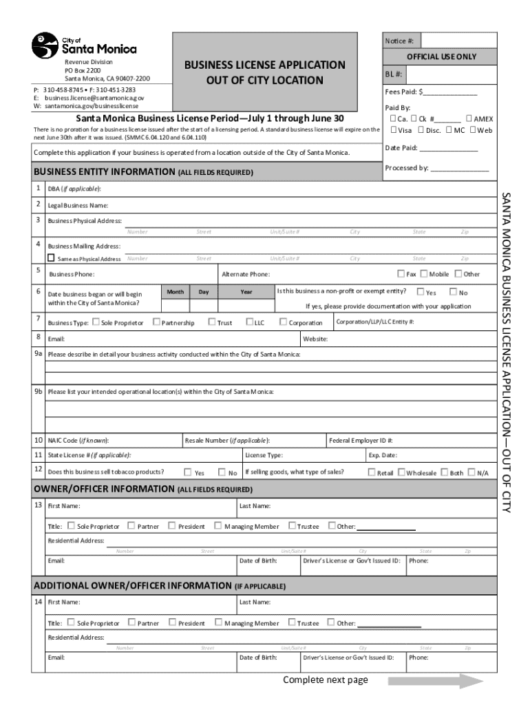 Get the free Business License Application Out of City Location