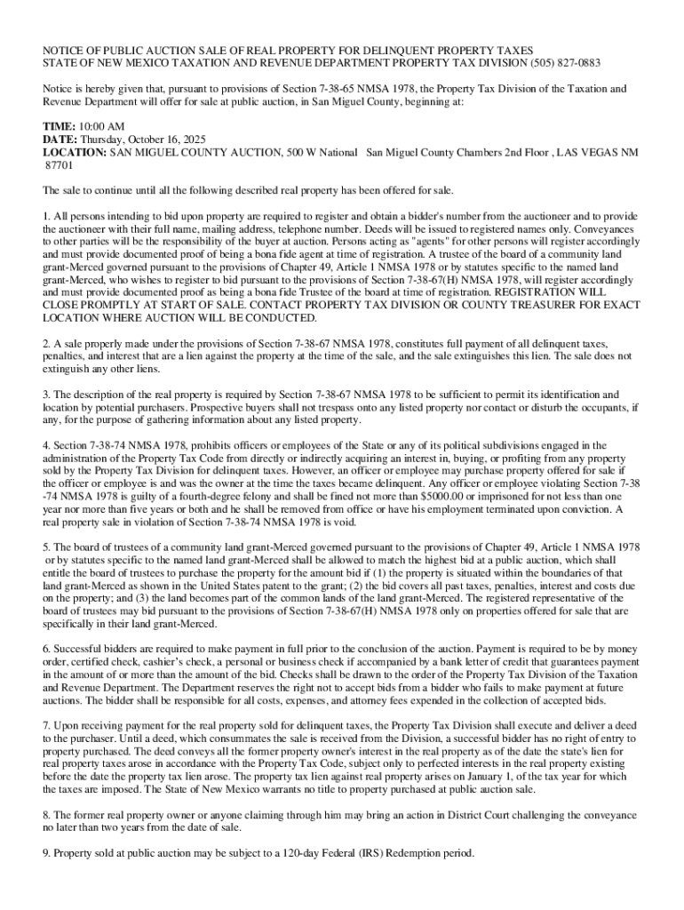 Get the free Notice of Public Auction Sale of Real Property for Delinquent Property Taxes