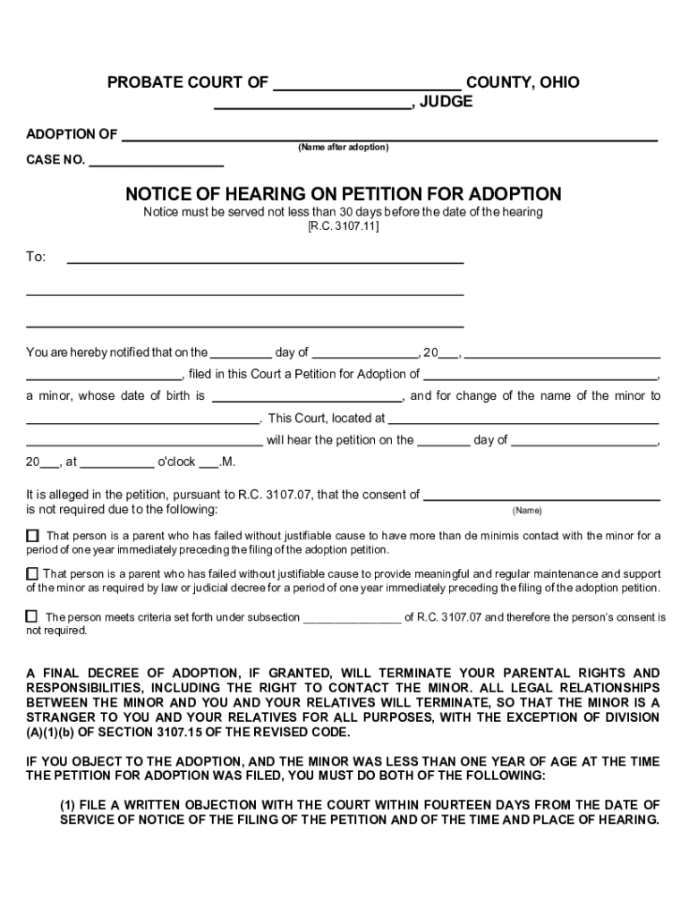 Get the free Notice of Hearing on Petition for Adoption