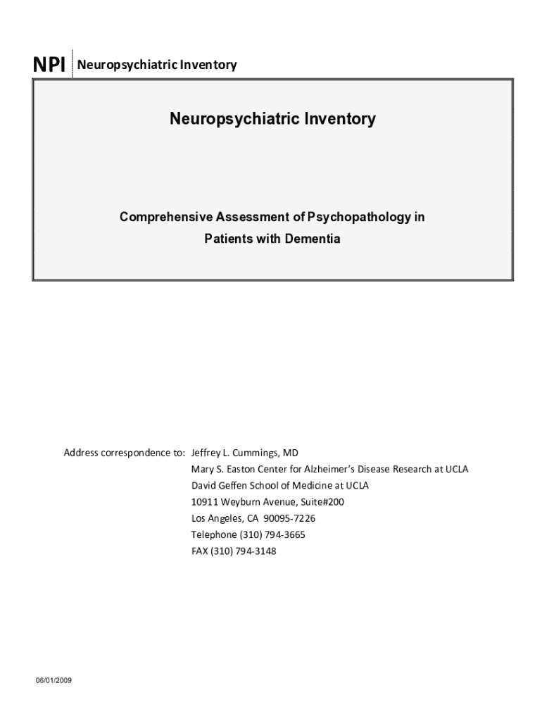 Get the free Npi Neuropsychiatric Inventory