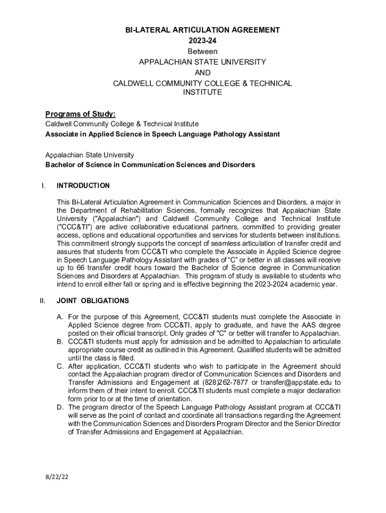 Get the free Bi-lateral Articulation Agreement - transfer appstate