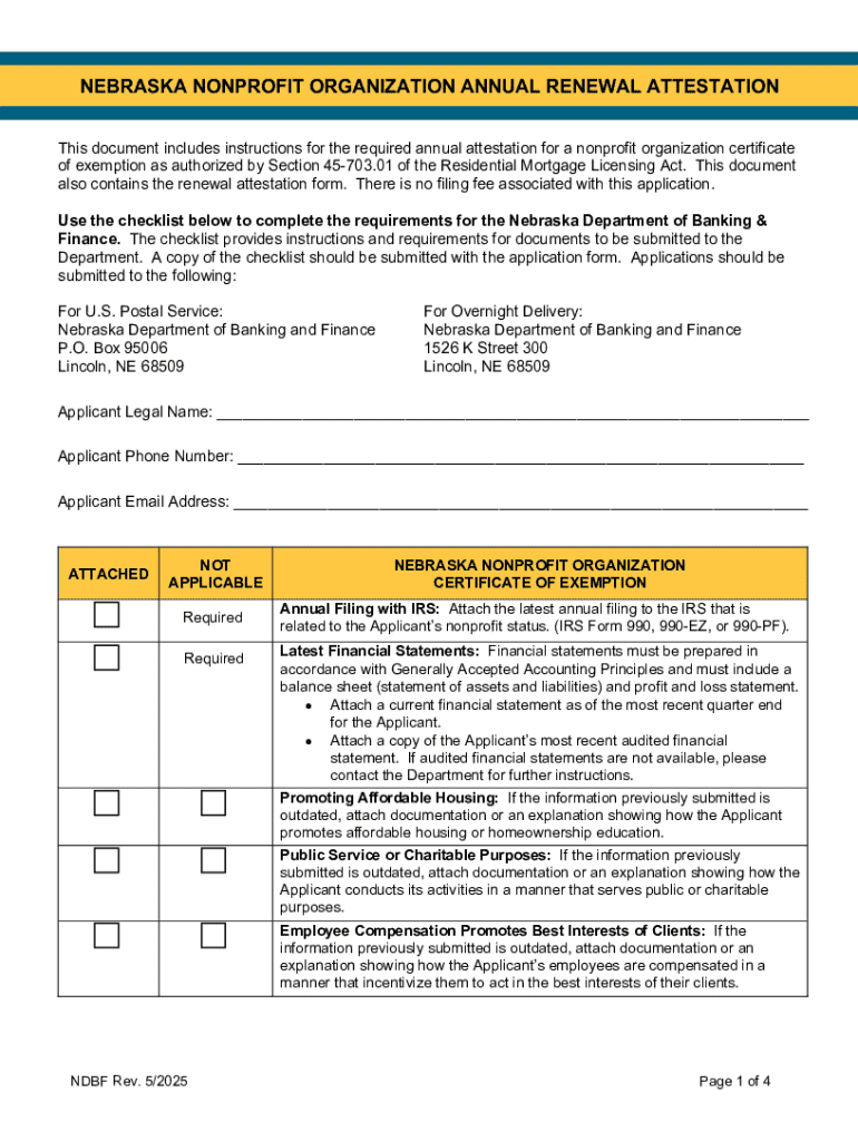 Get the free Nebraska Nonprofit Organization Annual Renewal Attestation