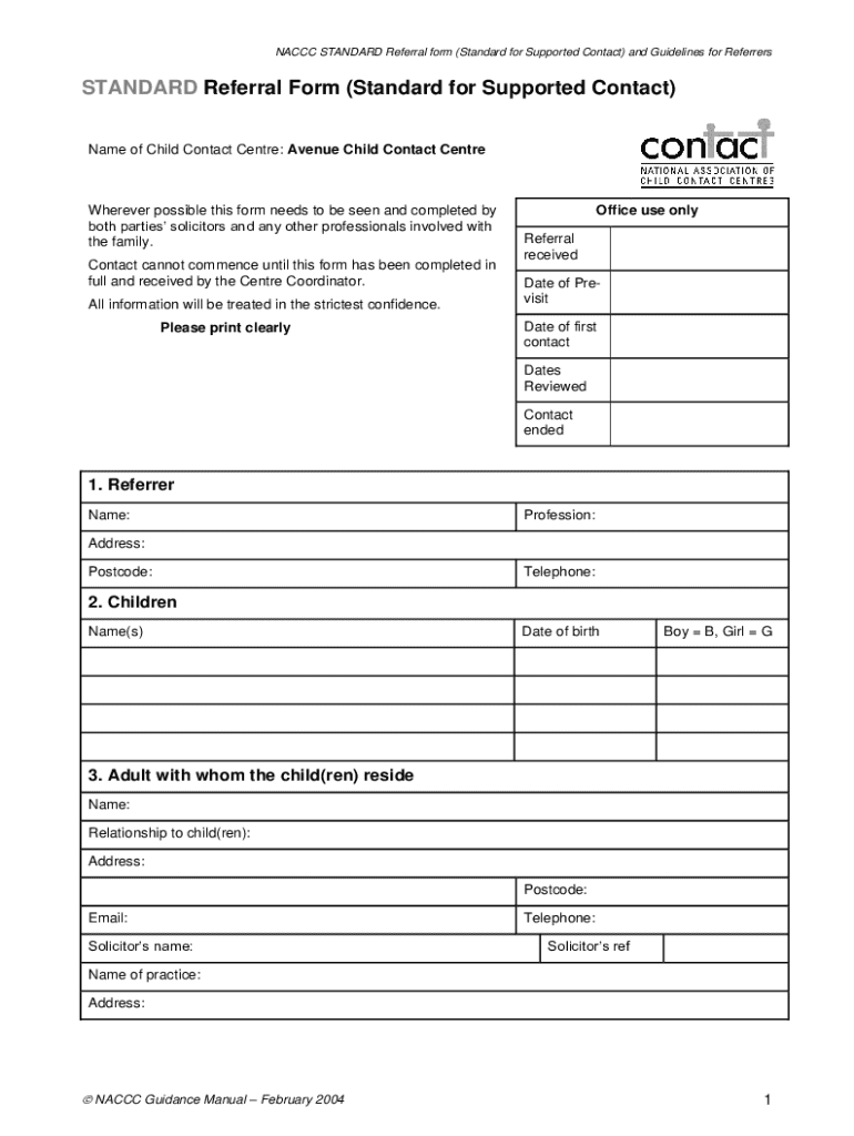 The NACCC Standard Referral Form is structured to capture essential details that pertain to a child's welfare and parental responsibilities. This structure includes several key components: the identification of parties involved, essential information required for processing the referral, and the legal implications tied to the information provided.
