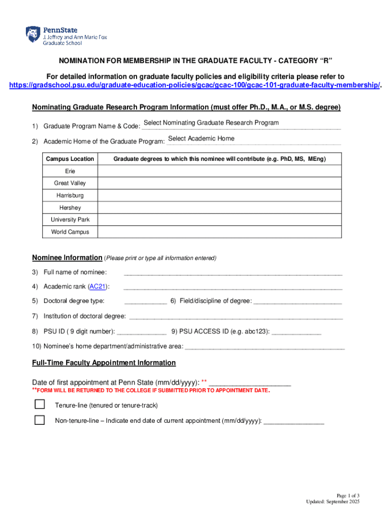 Get the free Nomination for Membership in the Graduate Faculty - Category “r” - gradschool psu