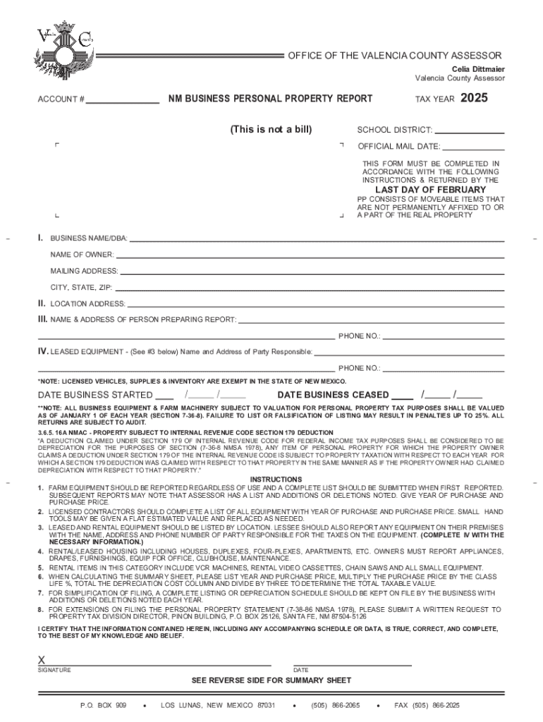 Every business operating in New Mexico that holds personal property with a value exceeding a specific threshold must complete the NM Business Personal Property Form. This requirement encompasses a wide range of business entities, including sole proprietorships, partnerships, corporations, and limited liability companies. If your business uses equipment, furniture, vehicles, or any other personal property that impacts your operations, you are likely required to file this form.