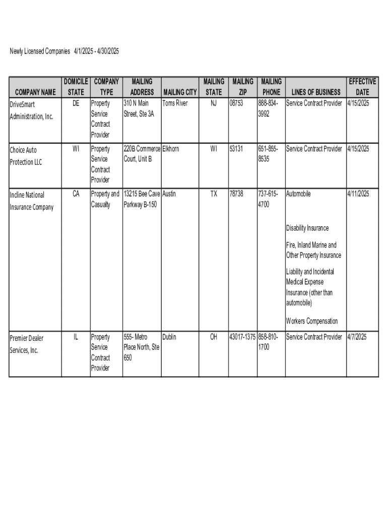 Get the free Newly Licensed Companies 4/1/2025 - 4/30/2025 - oci wi