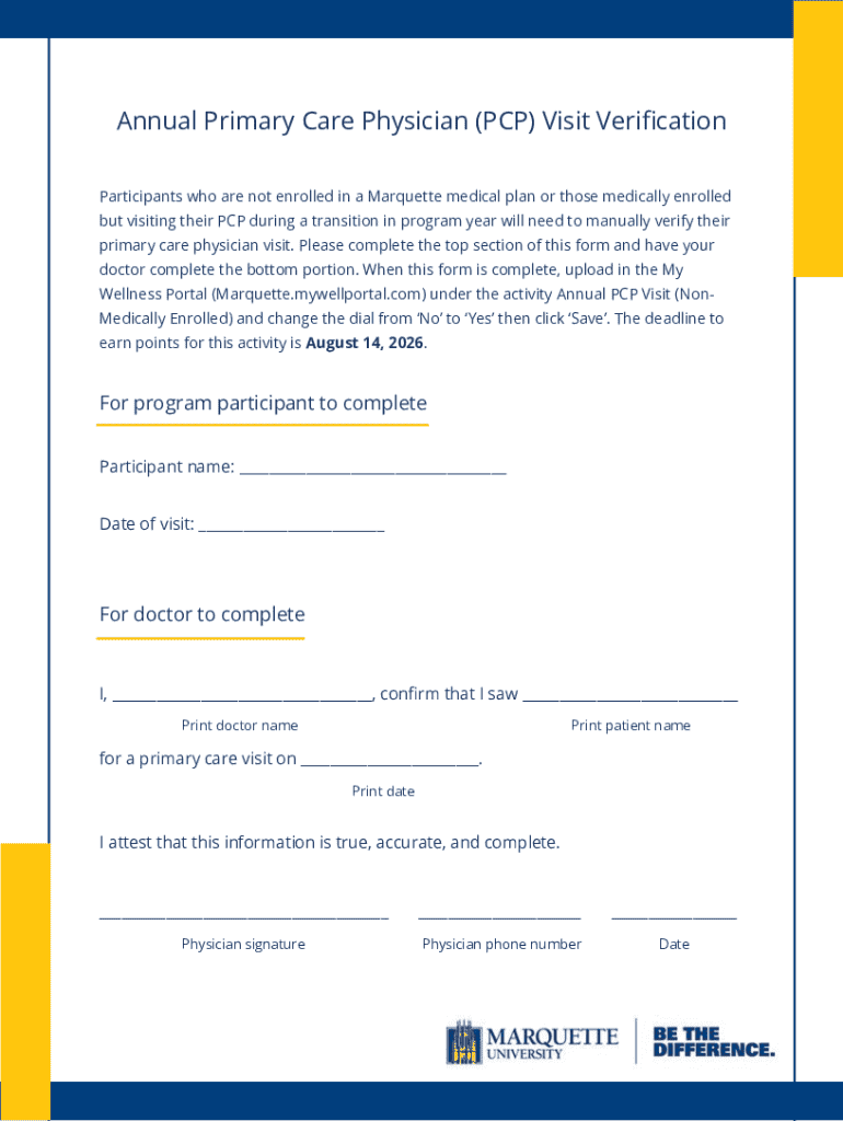 Get the free Annual Primary Care Physician (pcp) Visit Verification