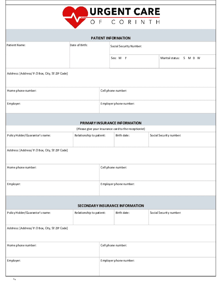 Patients seeking medical care are required to fill out a patient information form before receiving services from healthcare providers.