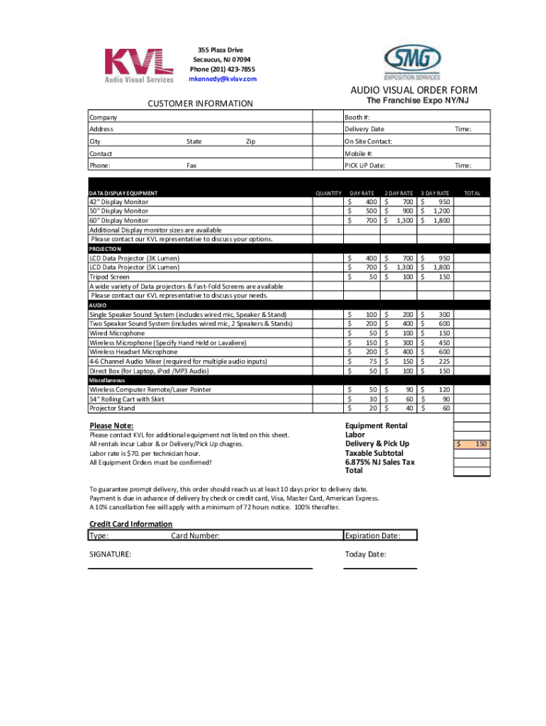 Get the free Audio Visual Order Form